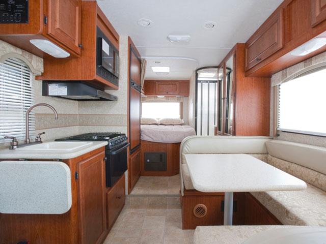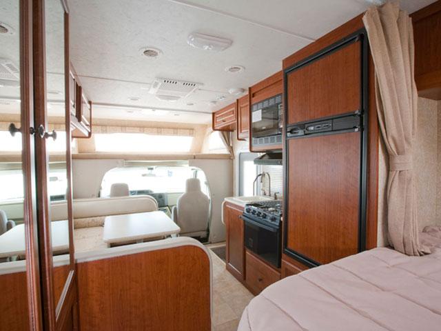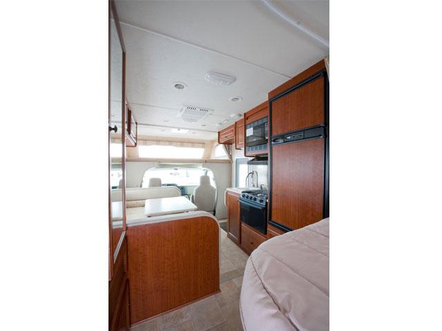 In-dash air conditioning in the drivers' cabin and central roof air in the living area.